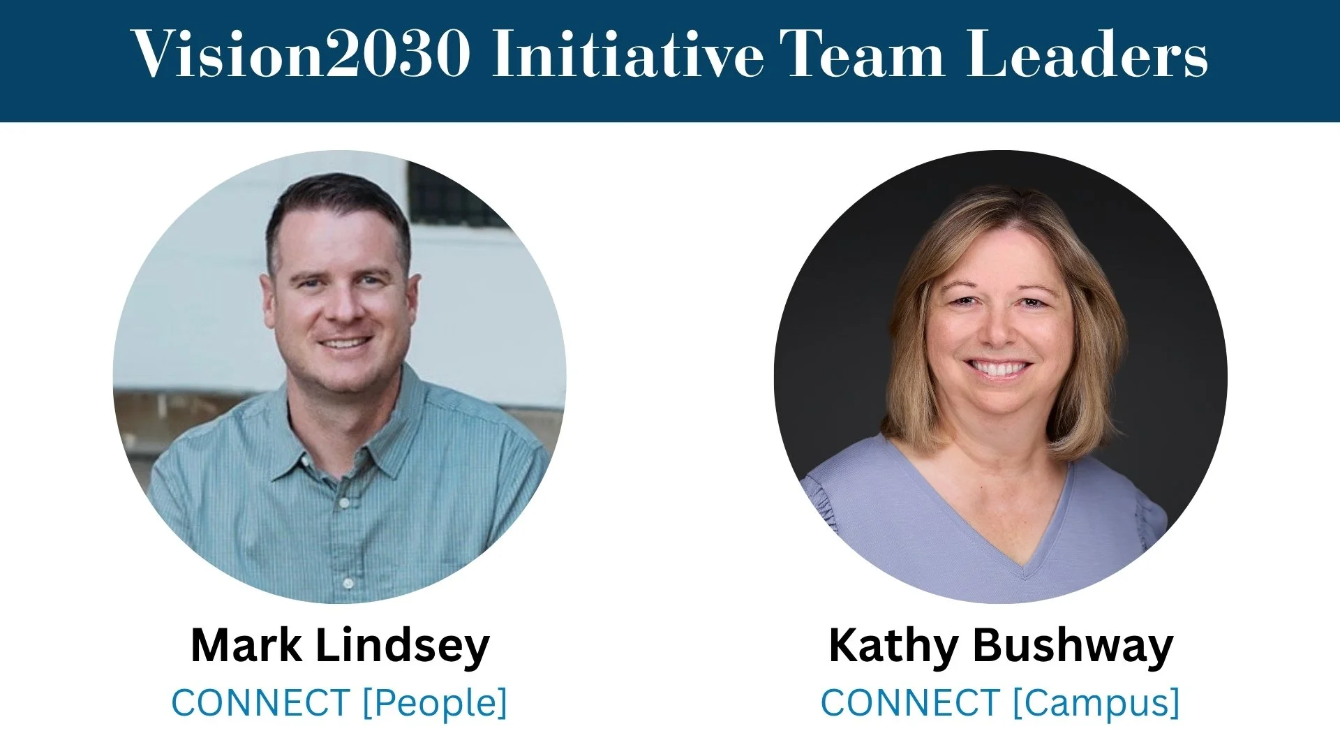 Please meet our new Initiative Team Leaders above! They will be meeting with the pastors in May to form these four teams from the great interest we've received and to begin to step forward further into Vision2030 on behalf of the congregation.